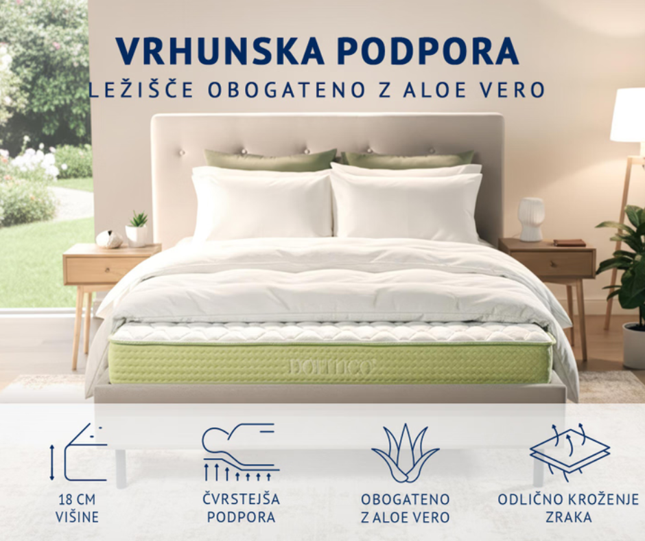 V prevleko našega ležišča je skrbno obdelana z izvlečkom aloe vere, ki izkorišča naravne lastnosti rastline za večjo mehkobo ter gladek občutek.