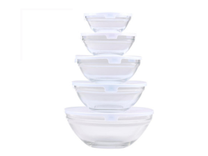 KOMPLET POSODE ZA SHRANJEVANJE HRANE, 5 x STEKLENA POSODA RAZLIČNIH DIMENZIJ, STEKLO